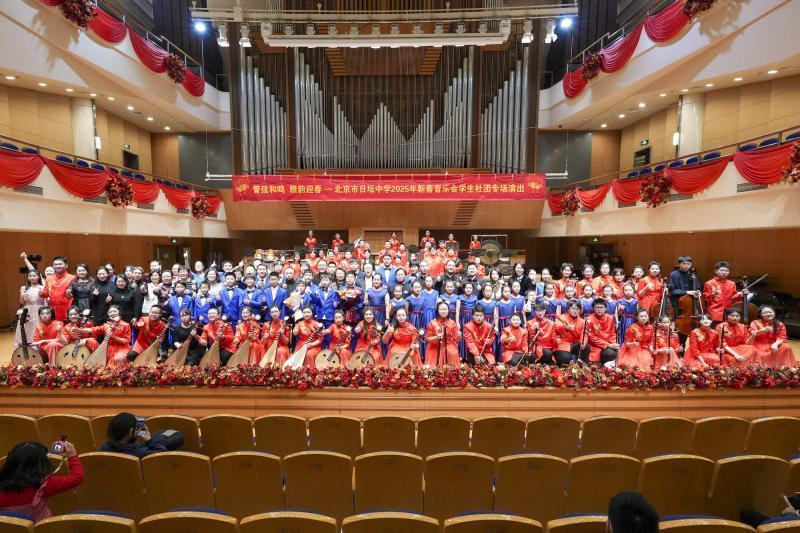 1月13日,北京市日坛中学在北京音乐厅举办“管弦和鸣、雅韵迎春”学生乐团新春音乐会,校领导、师生与家长们齐聚一堂,共享这场浸润着美育芬芳的视听盛宴。